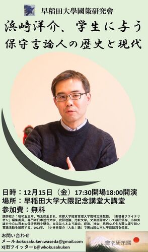 www.sankei.com 『産経新聞』に——と言うより、産経にいる私の知りあいの記者のNさんに(ここで名前を挙げると迷惑かもしれないので、名前は伏せておきます)——、早稲田大学での講演会(12月15日)を取り上げてもらいました! 初めは、学生のための講演会とし…